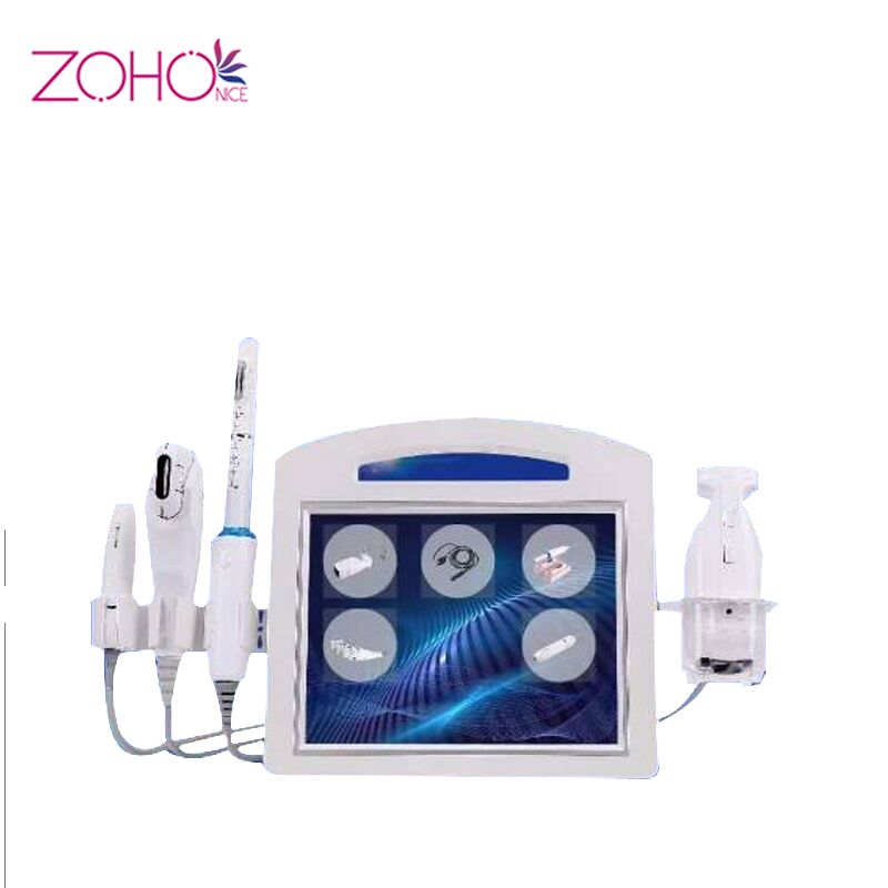 4. Ze specjalnym nadajnikiem, przewodzenie z powierzchni skóry skoncentrowanego ultradźwięku o wysokiej energii do warstwy SMAS.