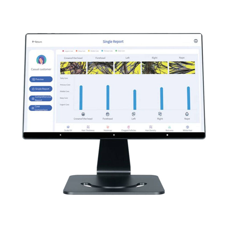 | Funkcja | Analiza skóry głowy, analiza wilgoci skóry głowy, analiza oleju skóry głowy, analiza grubości włosów, analiza gęstości włosów, analiza wrażliwości skóry głowy |
