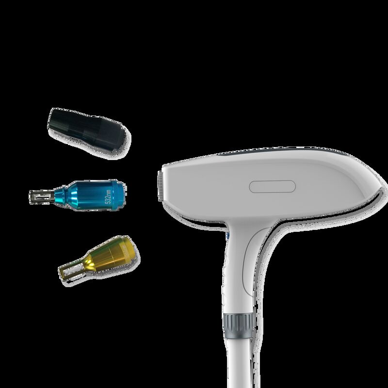 Laser posiada dwa wymienne końcówki leczenia, z których każdy oferuje różne długości fali: 1064 nm i 532 nm.